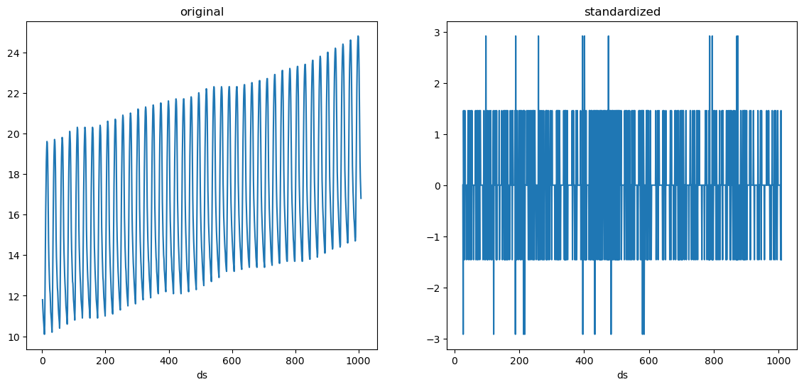 We see that our serie is random noise now. Suppose we also want to standardize it, i.e.ย make it have a mean of 0 and variance of 1. We can add the LocalStandardScaler transformation after these differences.
