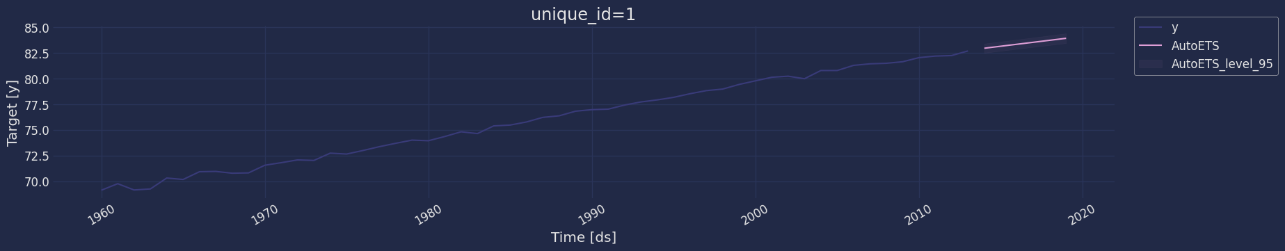 Access fitted Exponential Smoothing insample predictions.| unique_id | ds | y | AutoETS | |